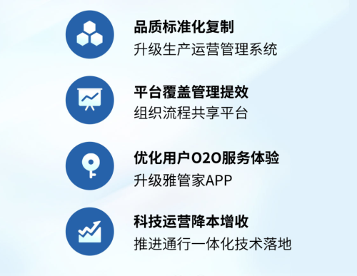 在科技賦能方面,雅生活集團將以服務業務發展為核心,以提升企業經營管理效能為目標,在數據端、管理端進一步提升信息化分析、運營能力,融合技術與服務,實現科技應用效能最大化;同時,依托住宅、非住宅領域管理經驗和在管項目規模優勢,攜手領先的云技術及智能科技合作伙伴,在業務端培育及輸出智能服務標桿產品,實現管理模式及服務體驗的全面升級。
