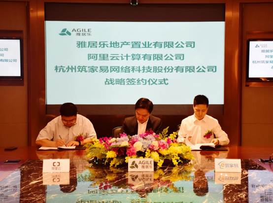 簽約儀式上,雅居樂地產集團副總裁兼產業發展中心總經理阮家聲、阿里巴巴集團副總裁兼阿里云IoT事業部總經理庫偉、筑家易CEO楊斌,分別代表三方在協議上簽字,標志著雙方將攜手發揮各自優勢,進一步展開深度合作。